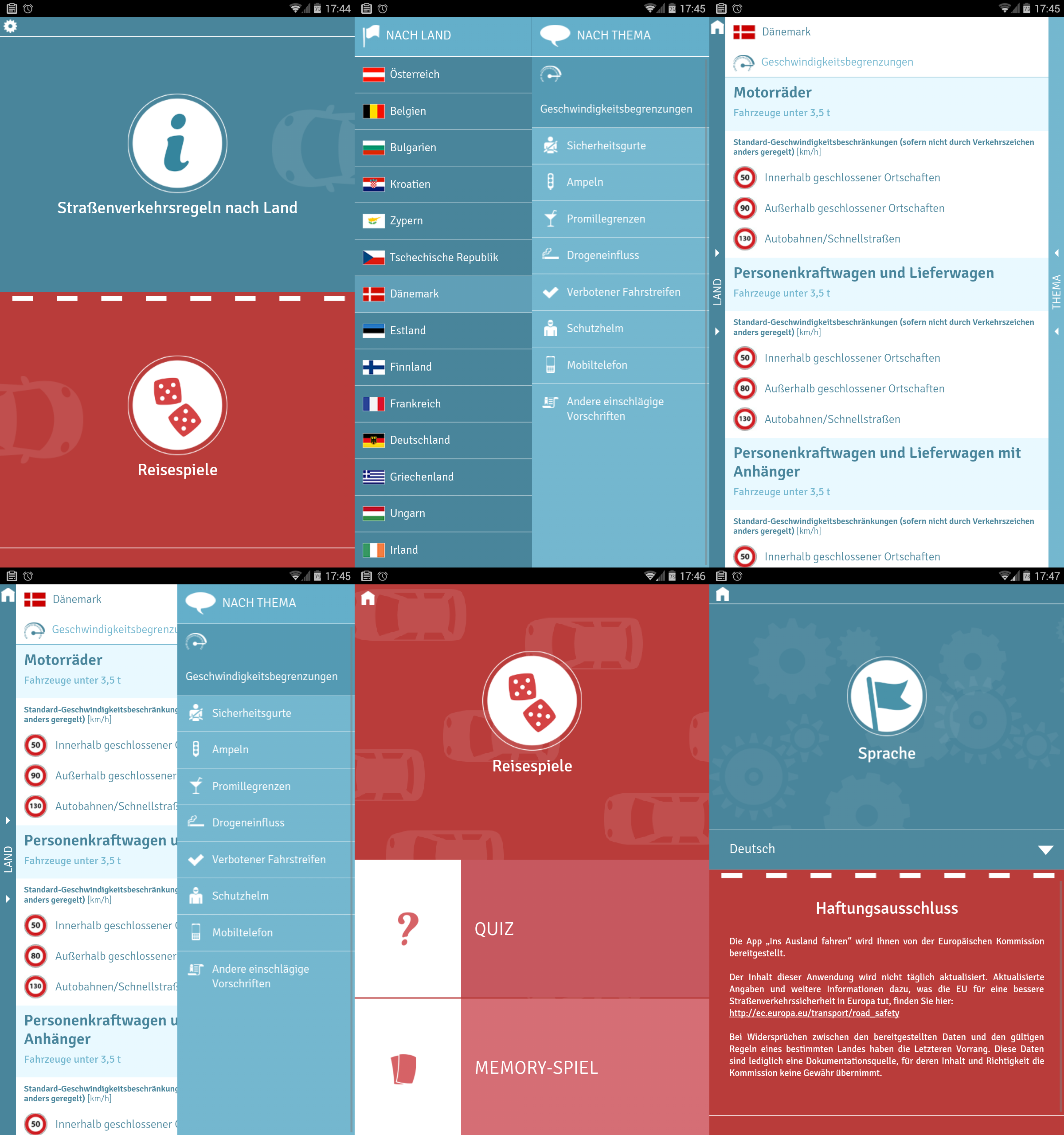 Von der Europäischen Kommision kommt diese Informationsapp über die Strassenverkehrsregeln im EU-Ausland. z.B. Schweiz und Norwegen fehlen daher, denn die sind nicht in der EU.