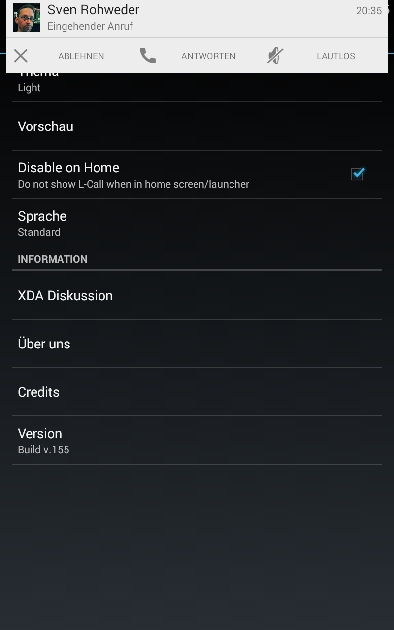 L-Call stellt diese Art der Anrufbenachrichtigung für alle Androiden ab Android 4.0 zur Verfügung. Anrufe werden nun über eine unaufdringliche aber doch auffällige Benachrichtigung signalisiert, den gewohnten Klingelton gibt es aber immer. Auf Wunsch ist diese Art der Benachrichtigung nur aktiv wenn man in einer App ist so dass man weiterhin die Bildschirmfüllende Anzeige hat wenn man eh gerade nur auf dem Startbildschirm ist.