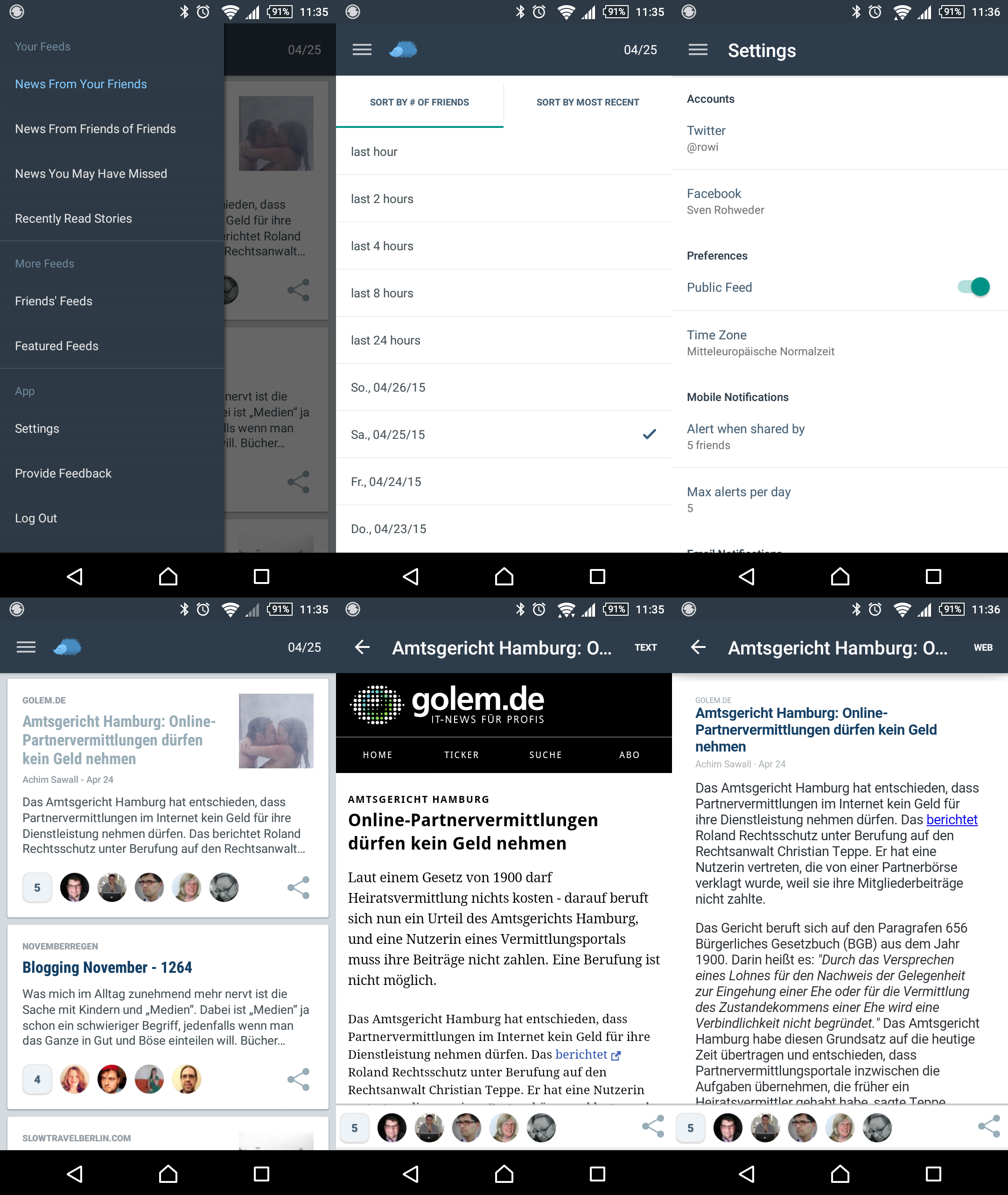 Tippt man in der App einen Link an öffnet er sich in einem integrierten Browser, auf Knopfdruck in einer Nur-Text Leseansicht die sehr gut funktioniert und eine Meldung meist besser anzeigt als innerhalb eine kompletten Webseite.