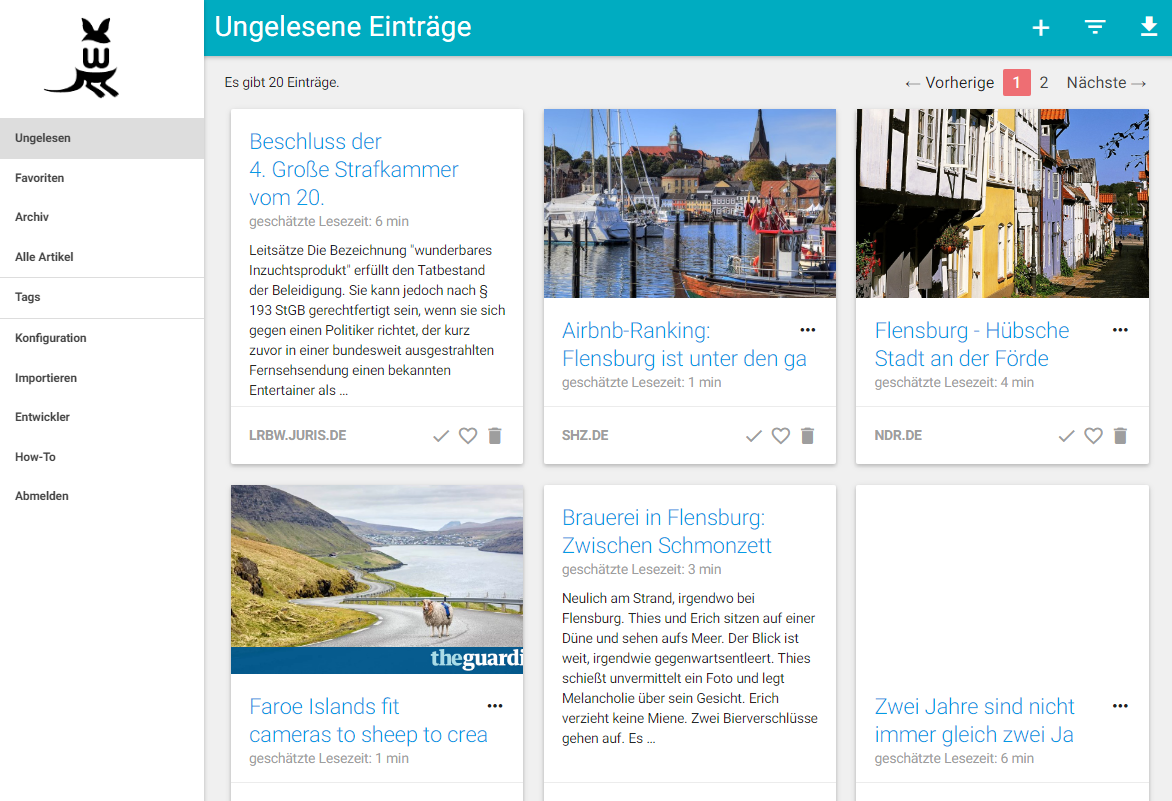 In die gleiche Kerbe wie Scuttle schlägt nun Wallabag, das ich mit installiert habe.