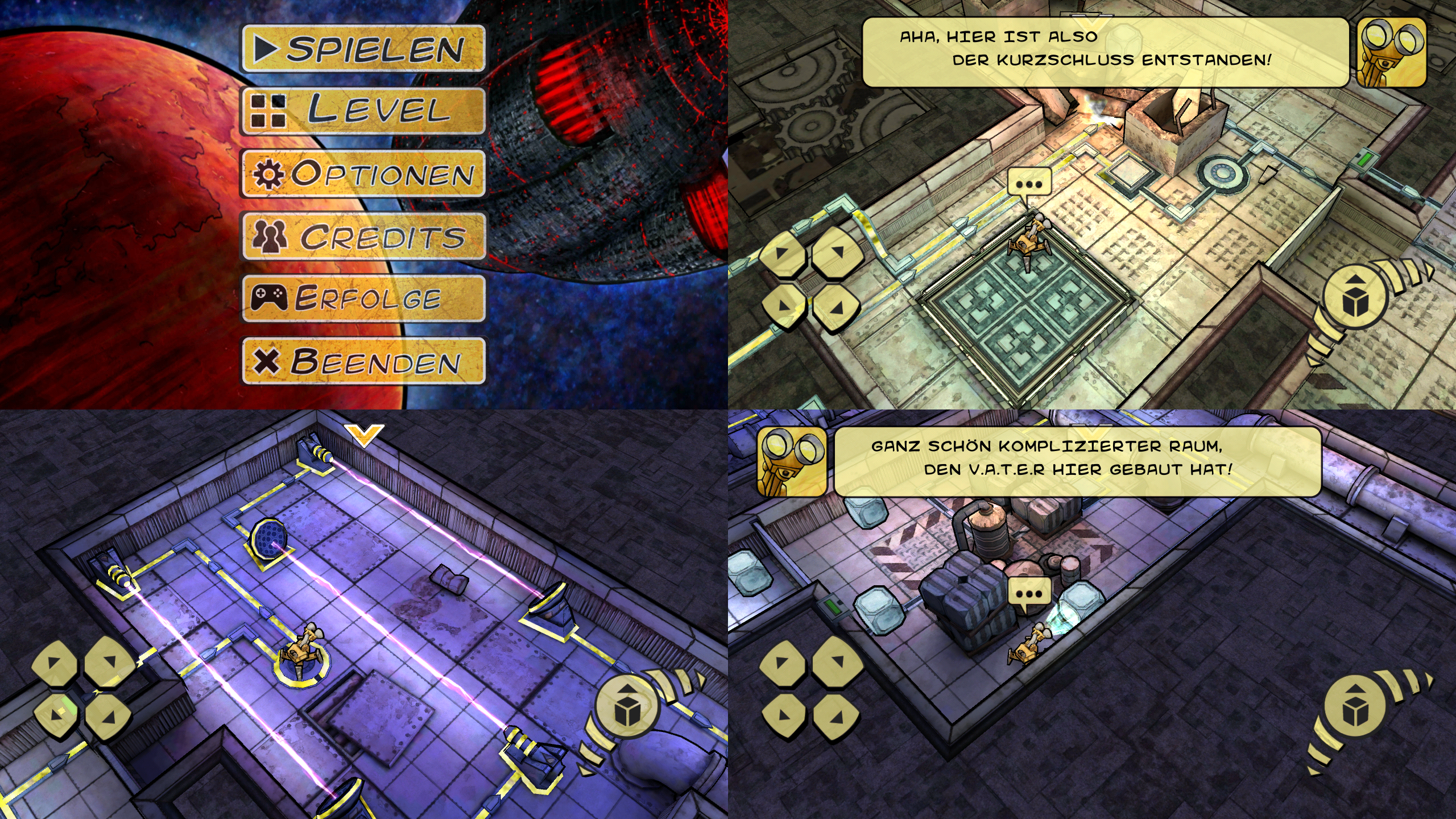 Als Wartungsroboter muss man hier verschiedene Rätsel lösen um in jedem Level zum Ziel zu kommen. Zwischen feiernden Robotern muss man dazu Dinge bewegen, Schalter umlegen usw. um Türen zu öffnen oder jemanden zu betreuen, Gegnern (der Aufgabe) aus dem Weg zu gehen. Die Level sind dabei relativ groß und bestehen nicht nur aus ein Bildschirm kleinen Minileveln. Eingebettet ist alles in eine sehr schräg-humorvolle Rahmenhandlung, die ebenso Spaß macht wie die passende Comicgrafik.