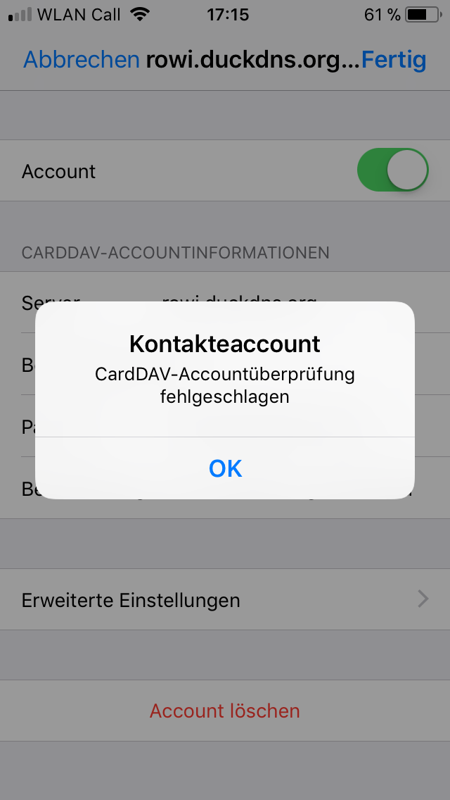 die für Kontakte und Kalender verwendeten Protokolle CalDAV und CardDAV kann das System direkt ohne Zusatzprogramm. Man richtet einfach einen weiteren Account in den Einstellungen ein. Das ist Apple-typisch mit wenigen Angaben getan, ebenso Apple-typisch ist man aber aufgeschmissen, wenn es wie bei mir nicht funktioniert, weil man eben auch keinerlei verwertbaren Details bekommt ausser “klappt nicht!”