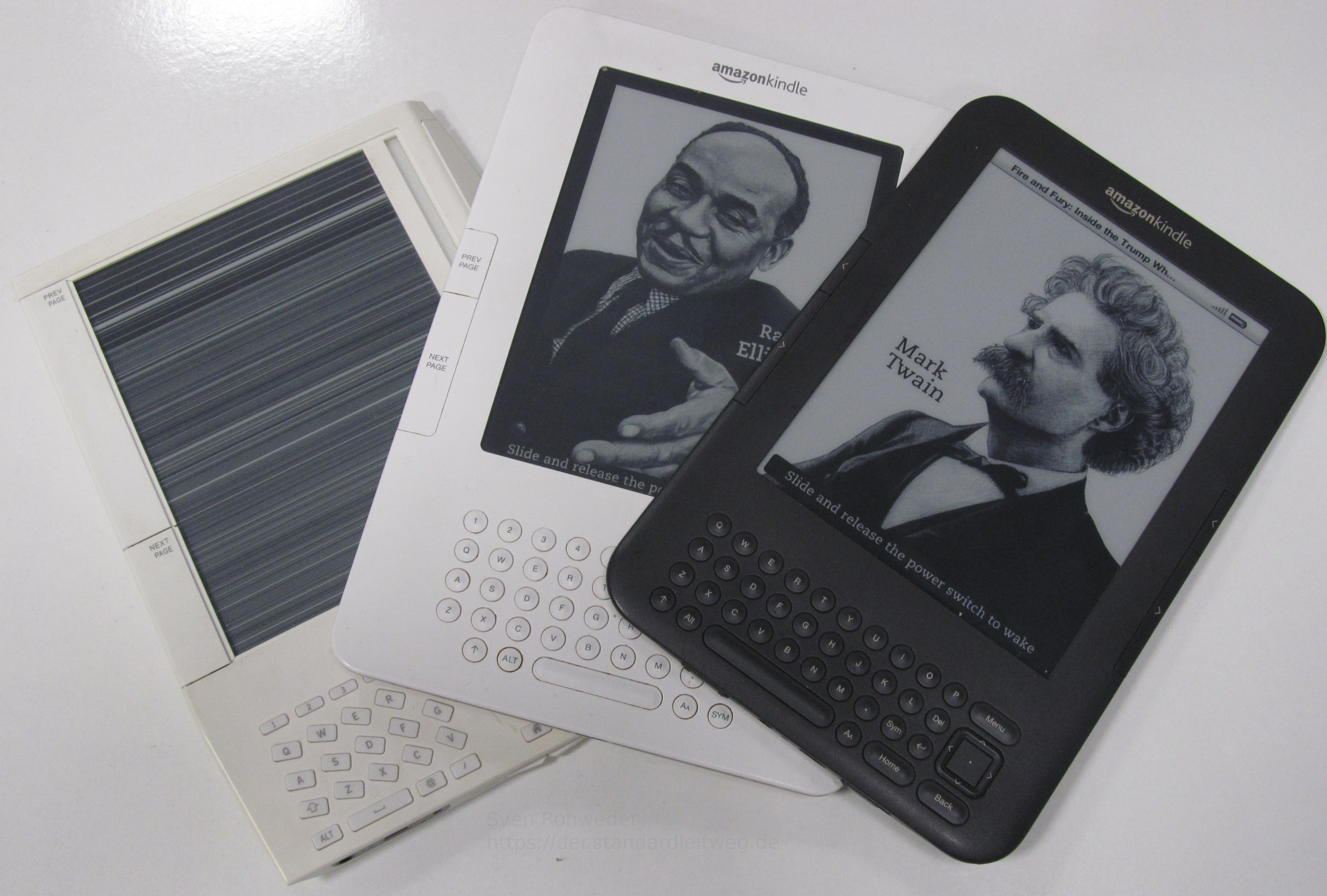 Mehr aus Spaß habe ich mir bei günstigen Gelegenheiten die ersten drei Kindle-Generationen (und einen Sony-Reader) ersteigert.