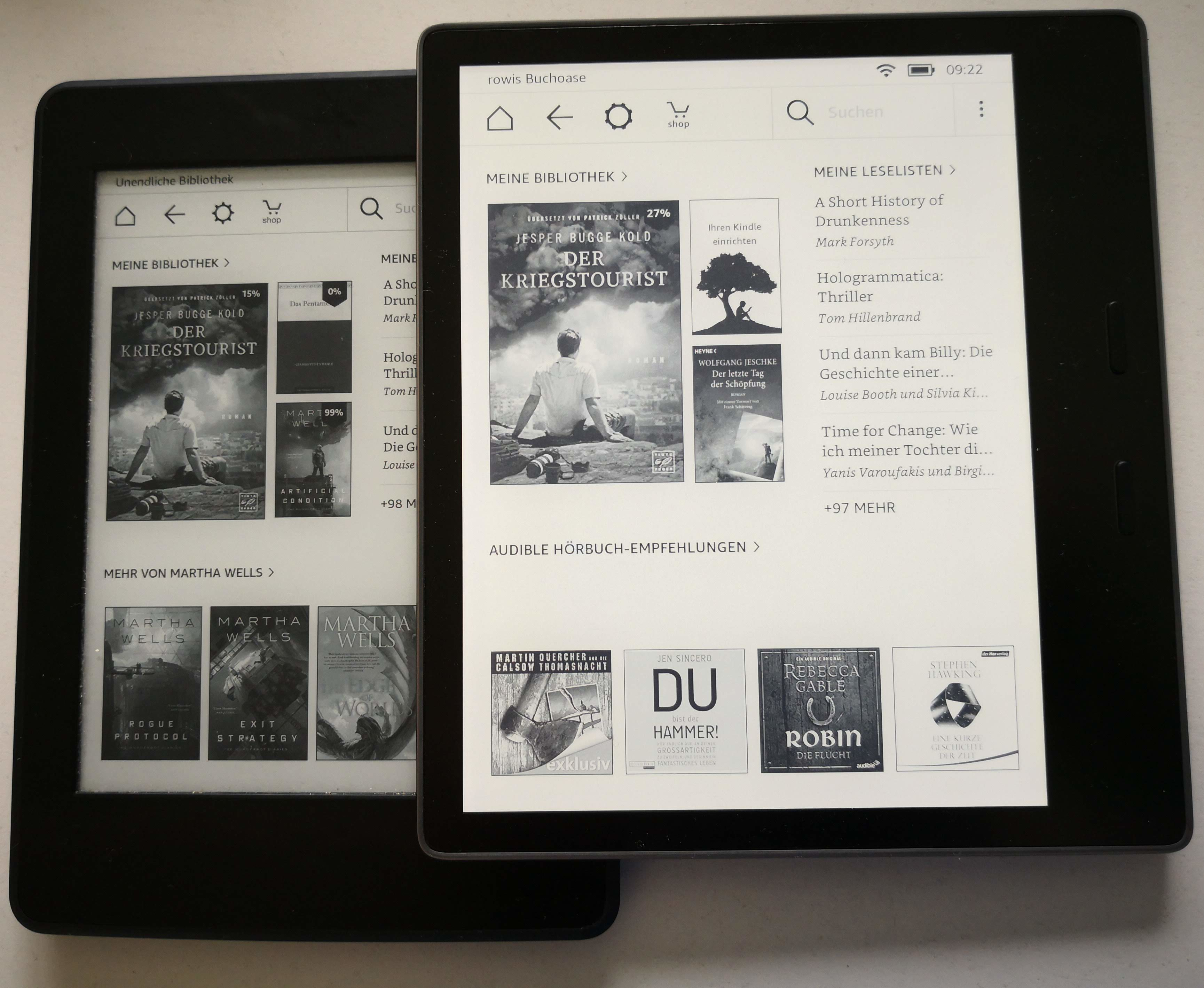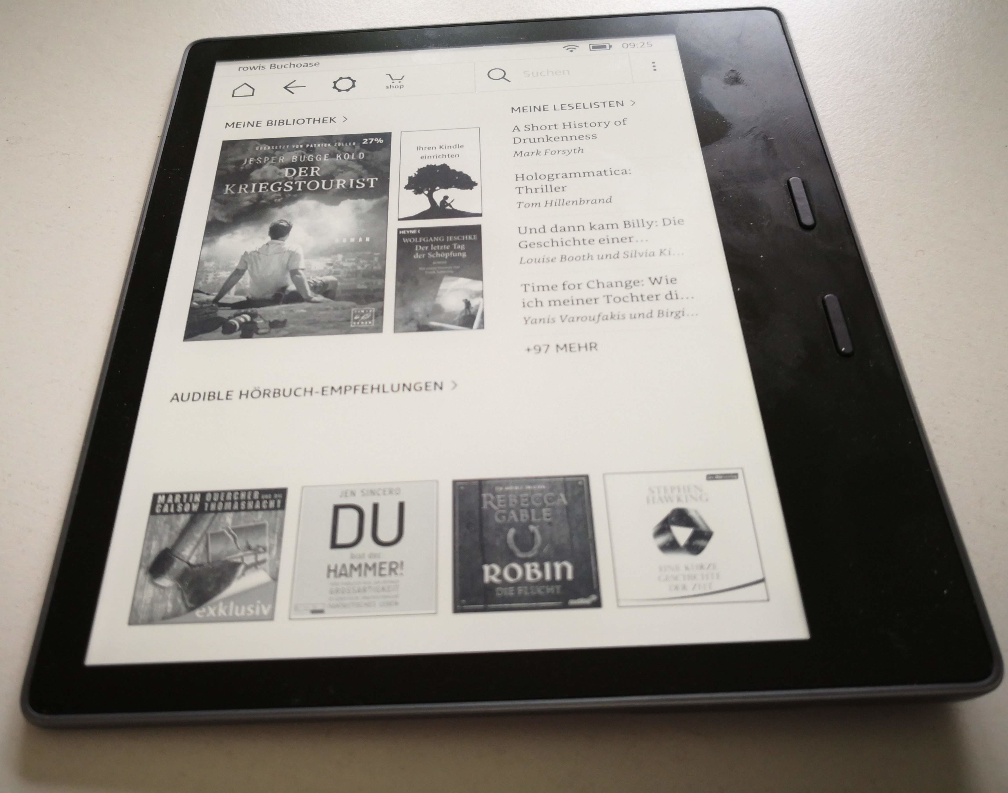 Der Oasis ist nochmal ein Stück teuerer, bietet dafür zusätzlich aber ein größeres Display (auch mit 300ppi), richtige Tasten und ein asymmetrisches Gehäuse, das besonders zum einhändigen halten geeignet ist. Die automatische Helligkeitsregelung und ein planes Display hat er auch, dazu auch noch die Möglichkeit Audible Hörbücher abzuspielen und zwischen Buch und Hörbuch zu springen. Fast wie ich es mit der Smartphone-App gebloggt hatte, es fehlt nur das gleichzeitige lesen und hören. Wasserfest ist er auch noch. Sehr schick, aber auch sehr teuer – mir zu teuer.