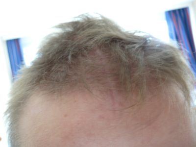 Für einen Eindruck hier ein Bild meines Schädels mit Hemikraniektomie. Ist zwar nicht so eindrucksvoll wie es sein könnte, aber derzeit ist die Verwendung eines Kamms oder Bürste gewissen Einschränkungen unterworfen…