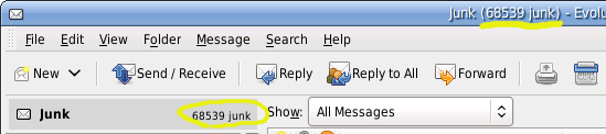 Ich hab ja neulich mein Postfach aufgeräumt und zumindest die normale Inbox vom Spam befreit. So ca. 2500 Spam-Mails waren den Filtern durch die Lappen gegangen. Vorhin wollte ich mich mal dranmachen die erkannten Spams auf False-Positives zu überprüfen. Wollte. Aber seht selbst: