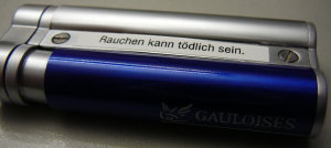 Abends war ich im mit ein paar Freunden im Grisou (nein Martin, ich hab keine Fotos gemacht) und plötzlich Stand ein Mädel von Gauloises neben uns, hat kurz überprüft ob Raucher am Tisch sind (ich glaub, ich war der einzige Nichtraucher) und hat die obligatorischen Werbegeschenke mittels eines Geschichtsquiz an die Leute gebracht. Einmal war ich auch am lautesten schnellsten und hab dementsprechend auch ein Werbegeschenk bekommen. Ein hübsches Gas-Feuerzeug, kann man immer mal gebrauchen. Noch dazu praktisch verpackt in ein Stoffsäckchen das genau die richtige Größe hat für meinen schnurlosen Taschenfernsprecher. Also gleich zwei Geschenke auf einmal, das ist doch nett ![]()
