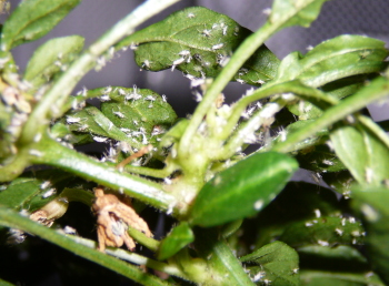 Die Parasiten die es sich auf einigen meiner Chili-Pflanzen gemütlich gemacht haben sind wohl Fliegen, so die Aussage der Blumenfee die ich dazu um Rat gefragt habe. Was wirksames, sprich giftiges, dürfen sie nicht verkaufen, sie riet mir wie meine Freund