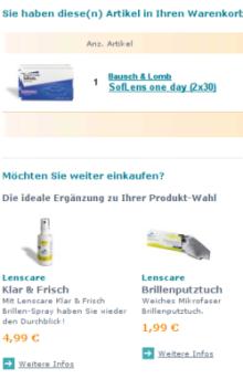 ). Denn was wird mir passend zu den Kontaktlinsen vorgeschlagen? Brillenputztücher und Anti-Beschlag-Spray für Brillen. Genau das brauch ich für meine Kontaktlinsen