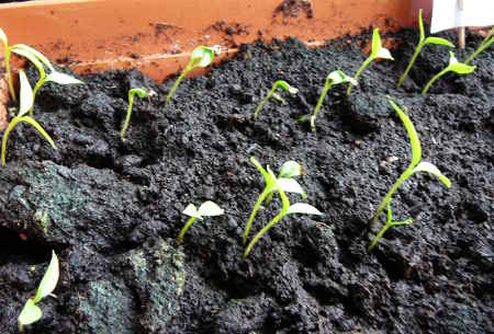 Ich hab ja vor einem Monat im Büro neue Chili angepflanzt. Aus den drei Keimlingen sind dort einige mehr geworden und auch zu Haus hab ich fleissig aus den letztjährigen Schoten ausgesäht.