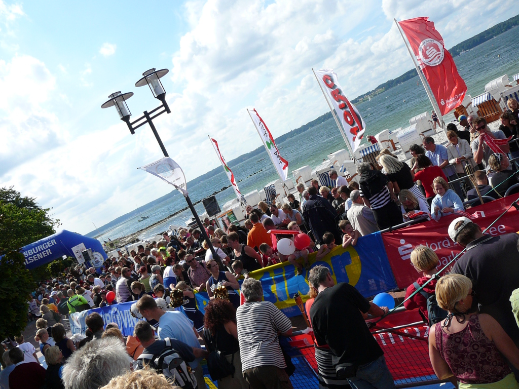 Am Sonntag ausgeschlafen und dann nach Glücksburg zum Ostseeman. Gemessen an der Parkplatzsituation waren es dieses Jahr noch mehr Zuschauer als sonst. Vielleicht nehme ich nächstes Jahr wirklich auch das Fahrrad, aber das würde vermutlich das fragile Gleichgewicht von Aktiven und Zuschauer zerstören. Für die sportliche Betätigung sind doch die Teilnehmer zuständig