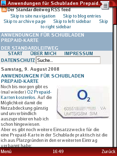Ein handheld CSS werde ich dennoch noch erstellen, das erscheint mir auch dringender als eine Druckversion wie Mike sie empfiehlt. Das ist zwar auch sinnvoll, aber eine mobile Version scheint mir wichtiger zu sein. Der tote Baum stirbt, die wenigsten Leser werden sich die Artikel ausdrucken. Mobiles Internet wird dagegen immer mehr normaler. Zwar rendern Browser wie Opera Mini und Safari auf dem iphone auch komplette Webseiten verdammt gut, eine auf die kleinen Displays angepasste Version ist aber mit jedem Browser hilfreich. Das Handydisplay wird nicht grösser durch eine verkleinerte Übersichtsansicht, spätestens wenn es and den Content geht ist ein Layout dass die Displaygrösse berücksichtigt essenziell.Nachtrag: Bulletproof bringt sogar von Haus aus eine print.css mit die auch sehr gut aussieht. Also viel Spass beim transferieren meines Blogs auf tote Bäume
