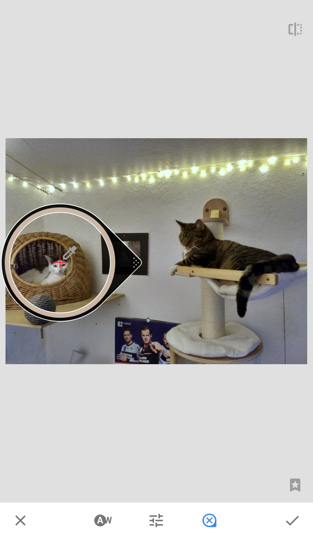Am Smartphone ist fast das erste was ich nach einem Bild mache, es einmal mit Snapseed zu öffnen und unter Tools den Weißabgelich aufzurufen. Snapseed hat da eine praktische Pipette, mit der ich einfach auf einen Punkt zeige, der mein Maßstab für weiß sein soll. Der Rest geschieht automagisch.