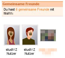 Interessanterweise kommt schülerVZ in meinVZ gar nicht vor. Das schützt die Schüler (gut!), aber auch ein Oberstufenschüler findet seinen studierenden Bruder nicht. Kann ich das dort noch nachvollziehen erscheint mir der Datenschutz an anderer Stelle etwas übertrieben. Wie auf dem Screenshot zu sehen sehe ich teilweise nicht einmal direkte Kontakte als gemeinsame Kontakte im Profil eines Freundes. Dort heisst es nur “studiVZ Nutzer”. In meiner Freundesübersicht sehe ich aber alle Kontakte. Kann mir jemand den Sinn dahinter erklären? Das sind ja keine Leute von der gleichen Hochschule oder andere Kontakte 2. Grades sondern Leute die ich schon direkt als “Freund” in meiner Liste habe. Strange.