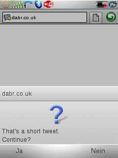 oder so ähnlich muss diese Meldung des mobile Webinterfaces für Twitter dabr gemeint sein: ![]()