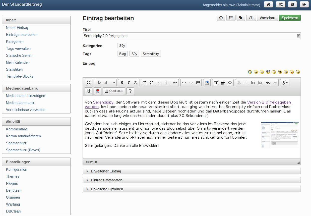 Von Serendipity, der Software mit dem dieses Blog läuft ist gestern nach einiger Zeit die Version 2.0 freigegeben worden.